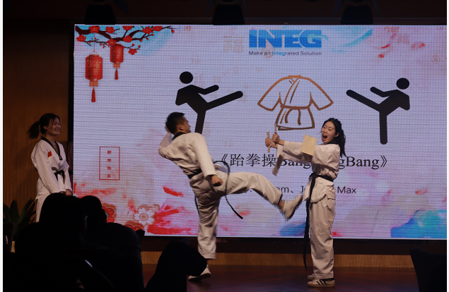 不得不说NG大舞台INTEG佳人们,太美了叭,怪不的说“城门外危难之间~英雄一怒为红颜~就只看了你一眼,便决定了永远~”下面有请仓库部的Elvis给NG大舞台带来一首好听的歌曲《醉千年》 欣赏完了旗袍秀和歌曲想不想再来一个劲爆的节目。跆拳踢木板+跆拳舞BangBangBang