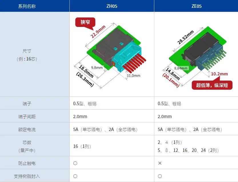 与车载电池内部连接用连接器ZE05系列比较